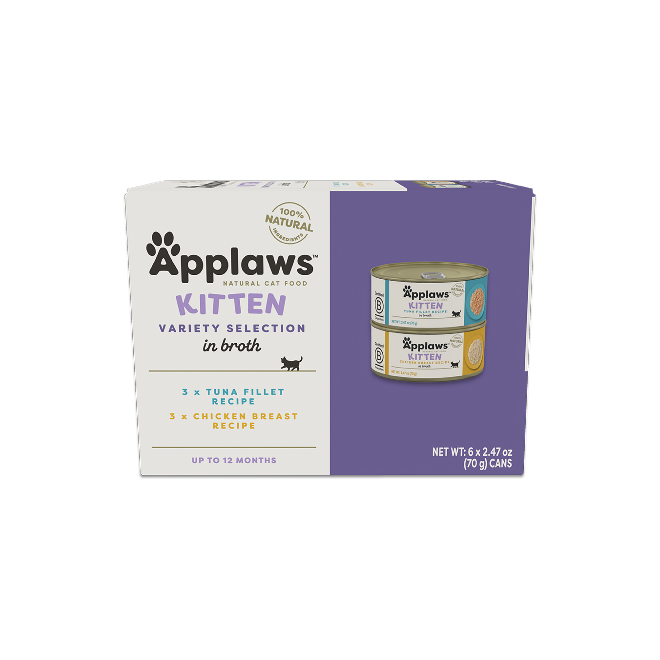 Applaws Kitten Variety Selection in Broth multipack is a 100% natural complementary pet food for kittens made with nothing more than the ingredients listed.