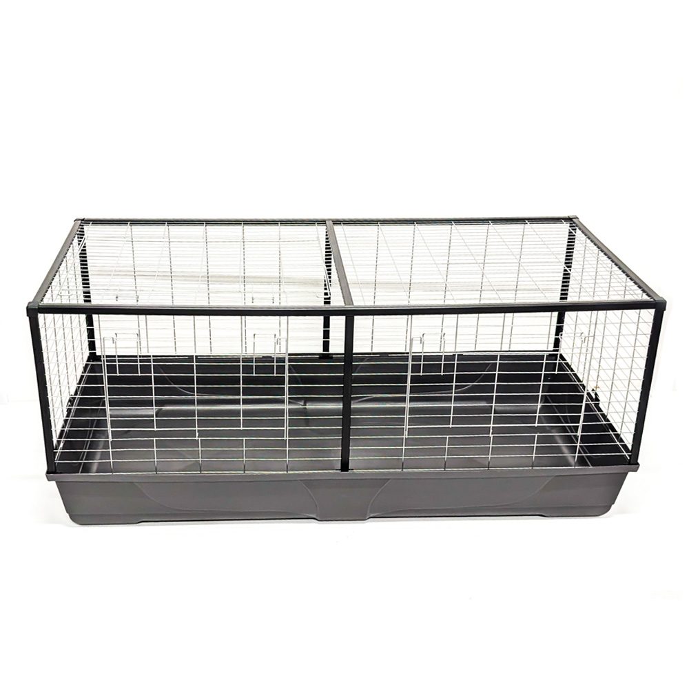 Rabbit 160 er et rummeligt kaninbur. Buret har en robust konstruktion med metalgitter og bund i plast, som gør det nemt at rengøre. Den antracitfarvede finish giver et enkelt og neutralt udtryk, der passer ind i de fleste hjem og udendørs omgivelser.