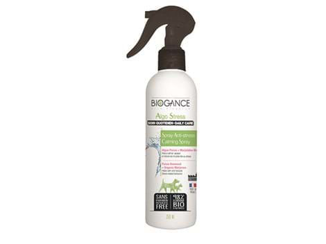 Biogance algo stress sprayen er en spray sammensat af et mix af tang, merian og æteriske olier, der har til formål at reducere stress og nervøsitet hos din hund. Den er ideel i tilfælde af ændringer i hundes daglige rutine f.eks ved flytning, rejser eller til nytår.