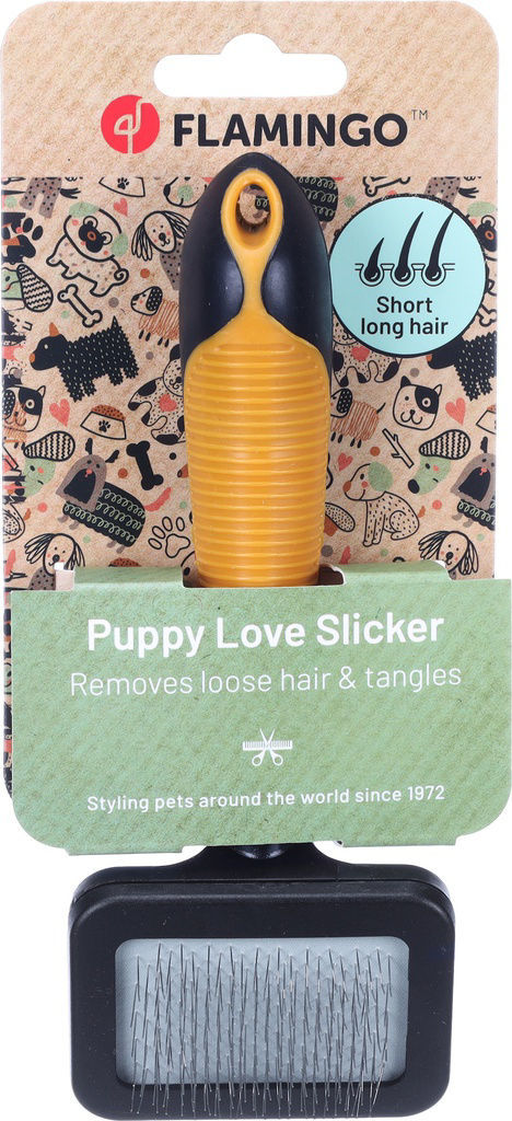 This universal brush is perfect for puppies with both short and long coats. The extra gentle bristles effortlessly untangle knots and remove hair. With the rubber handle, you'll always have a good grip.