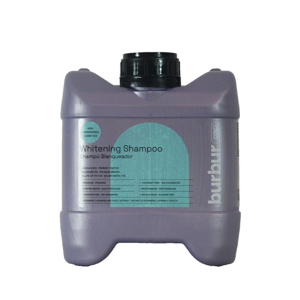 Burbur Whitening Shampoo. Professionel hundeshampoo udviklet til at genvinde det maksimale udtryk af hvidt hår, hvilket giver det vitalitet og glans. Formuleret med naturlige aktive ingredienser, der kombinerer kraften fra planter som lavendel, rosmarin og viol, som tilsammen danner en god allieret mod gullige reflekser takket være deres antioxidantkraft og Proshine for at forbedre farve og glans. Alt dette tilføjet til en 100% vegansk formel, med provitamin B5, fri for silikoner og farvestoffer, hvilket giver mulighed for de bedste professionelle resultater.