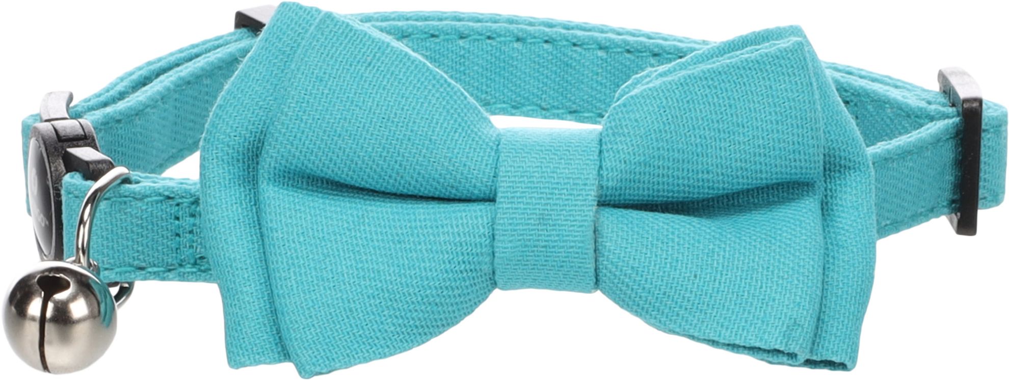 Make your cat shine like a star with this adorable light blue bow tie collar! Made from durable nylon and featuring a convenient snap closure with safety click. The detachable bow tie and cat bell complete the look perfectly. Get ready for those compliments to roll in!