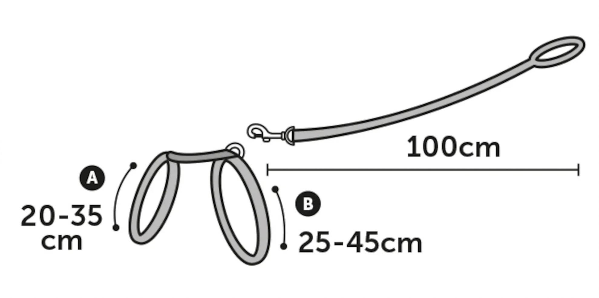 The harness has a click buckle and the leash has a carabiner