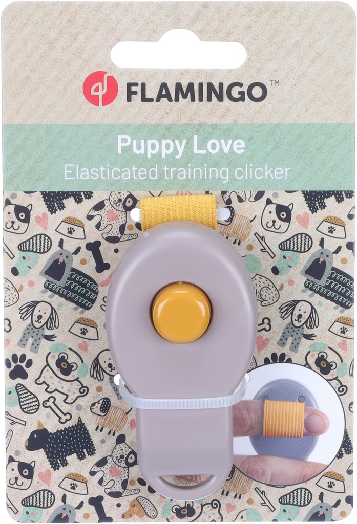 The Clicker Puppy Xia Taupe is perfect for training your pup! Made of plastic and metal, with a handy push button and elastic for hands-free training. Easy and effective!