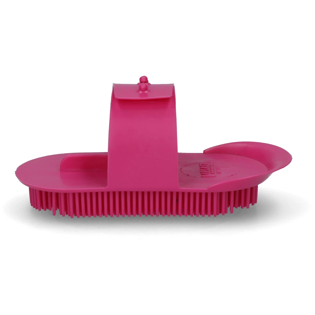 This durable curry comb is adjustable in size and made of slightly flexible plastic.