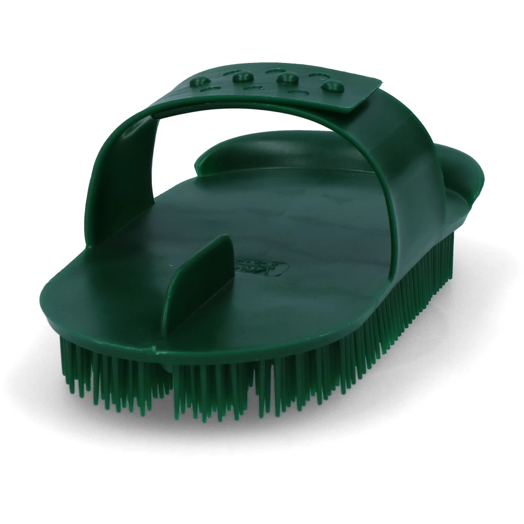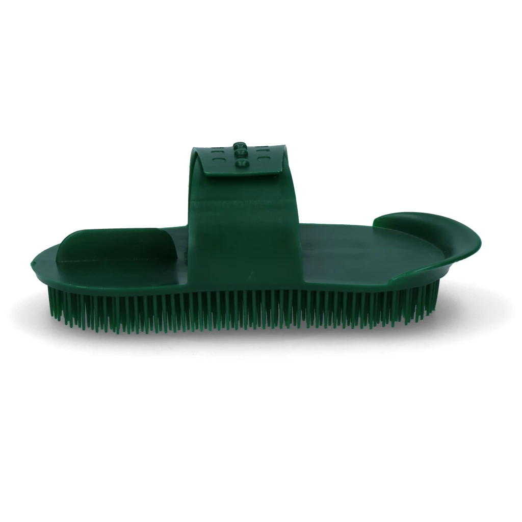 This durable curry comb is adjustable in size and made of slightly flexible plastic.