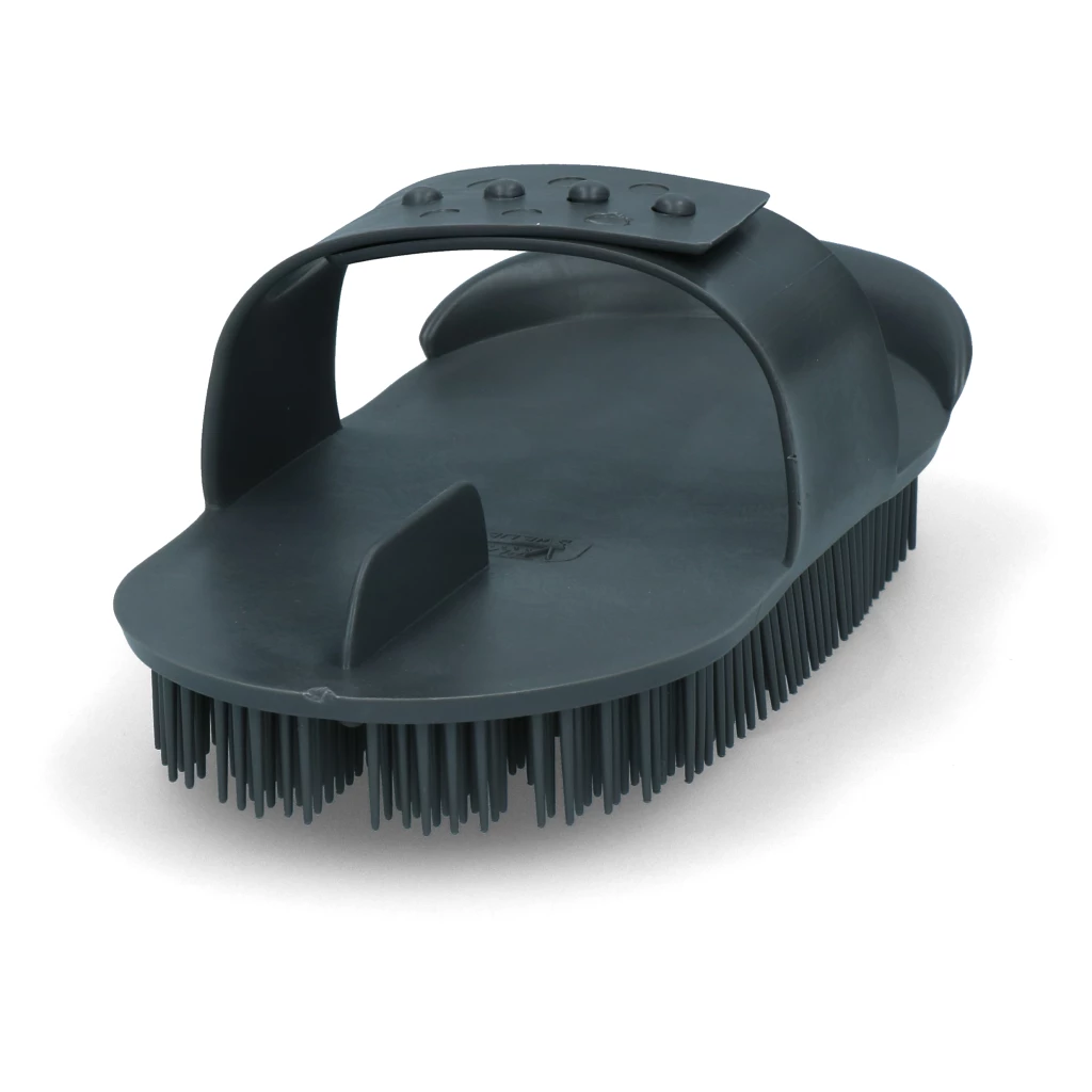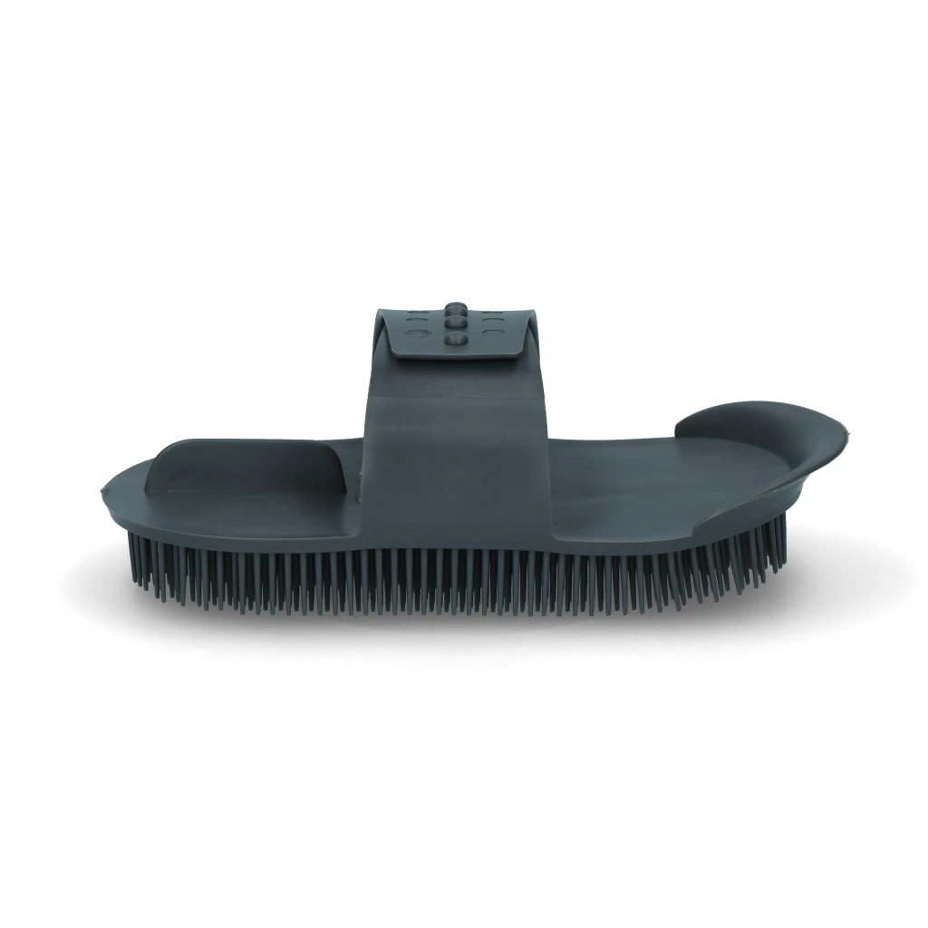 This durable curry comb is adjustable in size and made of slightly flexible plastic.