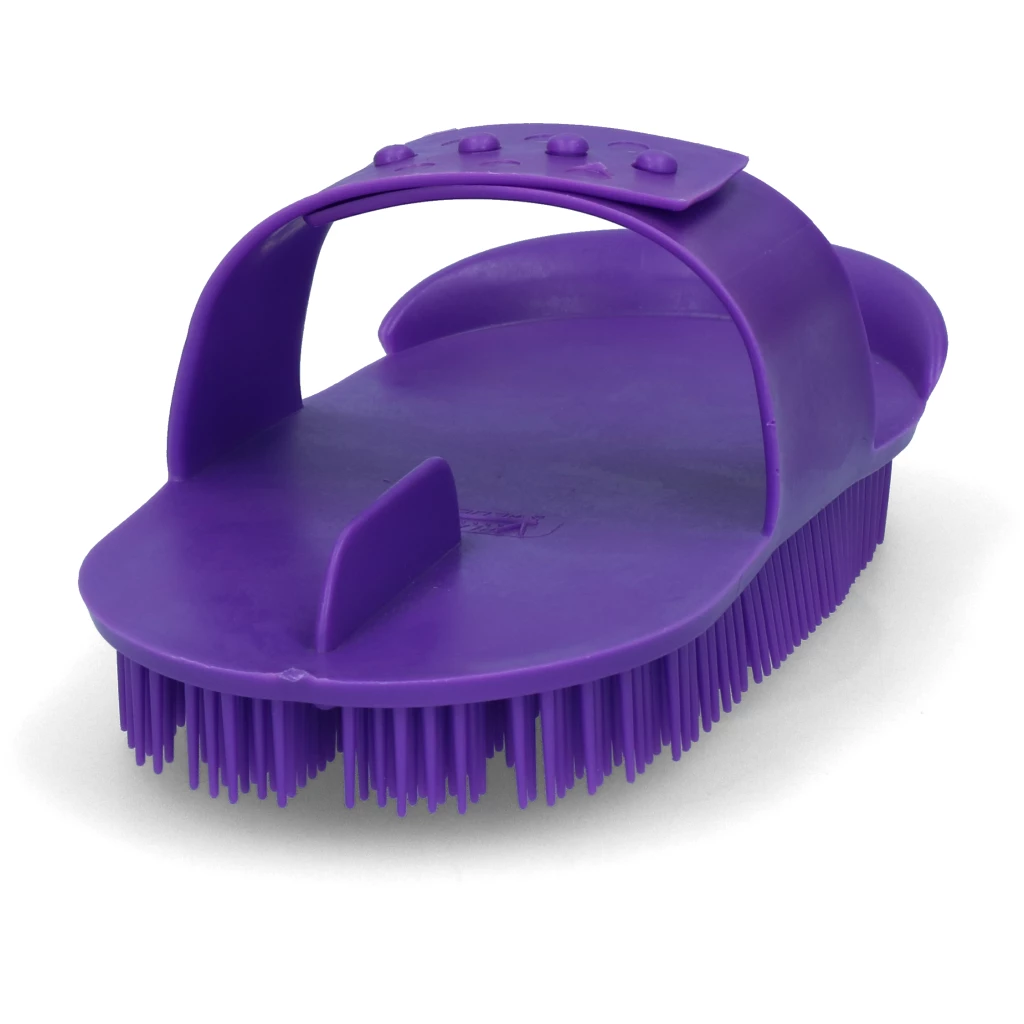This durable curry comb is adjustable in size and made of slightly flexible plastic.