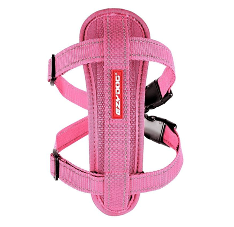 The Chest Plate Harness distributes load evenly across the dog's chest rather than the throat, making walks enjoyable for both you and your furry friend. The Chest Plate is made from an EVA memory foam to custom fit any dog chest A Seat Belt Restraint is included with every harness for restraining your dog when in transit.