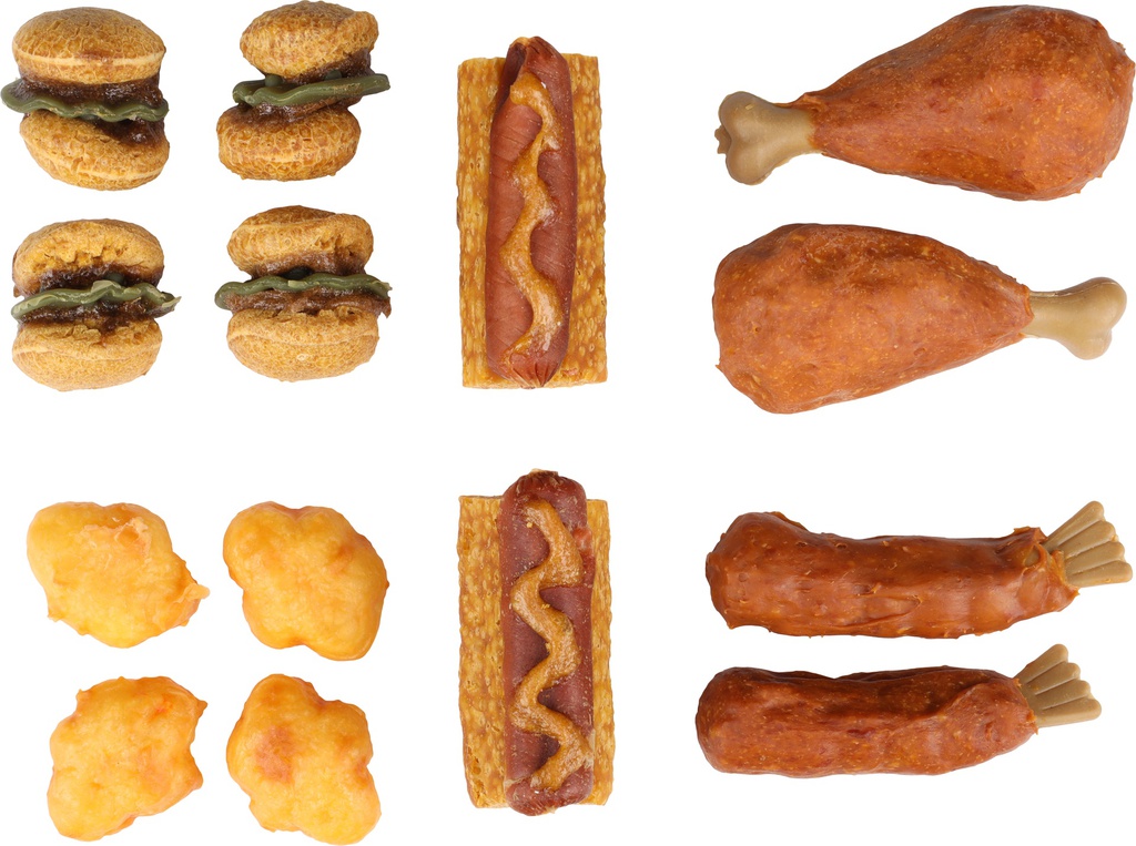 Treat your dog to our Fast Food box take away! Packed full of tasty snacks like nuggets, tempura, and mini hamburgers. No added sugars, just pure enjoyment for your pup!