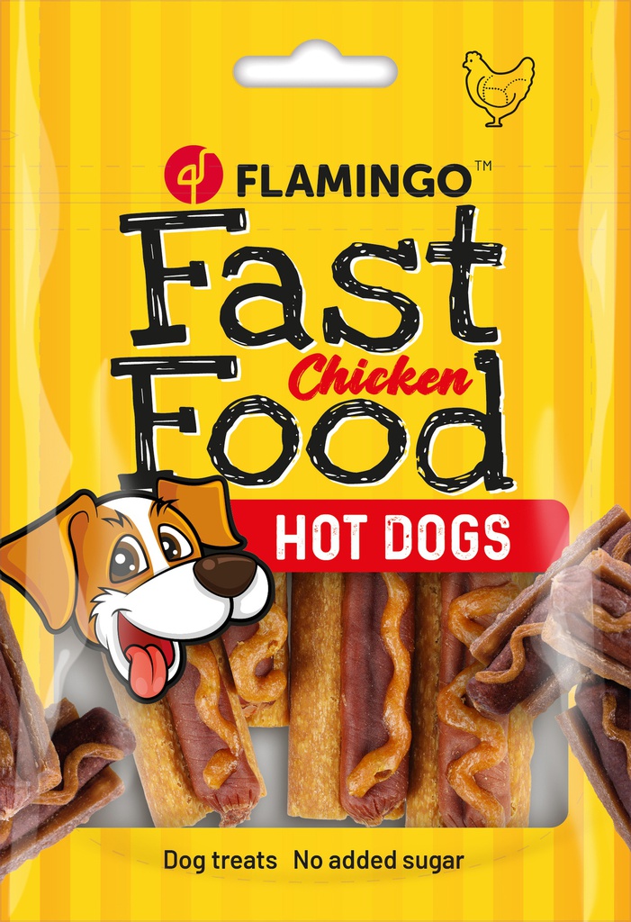 Treat your dog to this Fast Food chicken hotdog! A delicious treat with no added sugars. Perfect for a little indulgence in between meals.