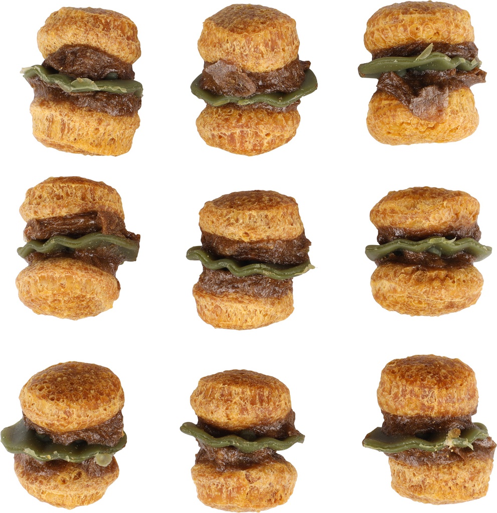 Treat your dog to this mini hamburger snack! Made with chicken and no added sugars. Perfect for a tasty treat in between meals.