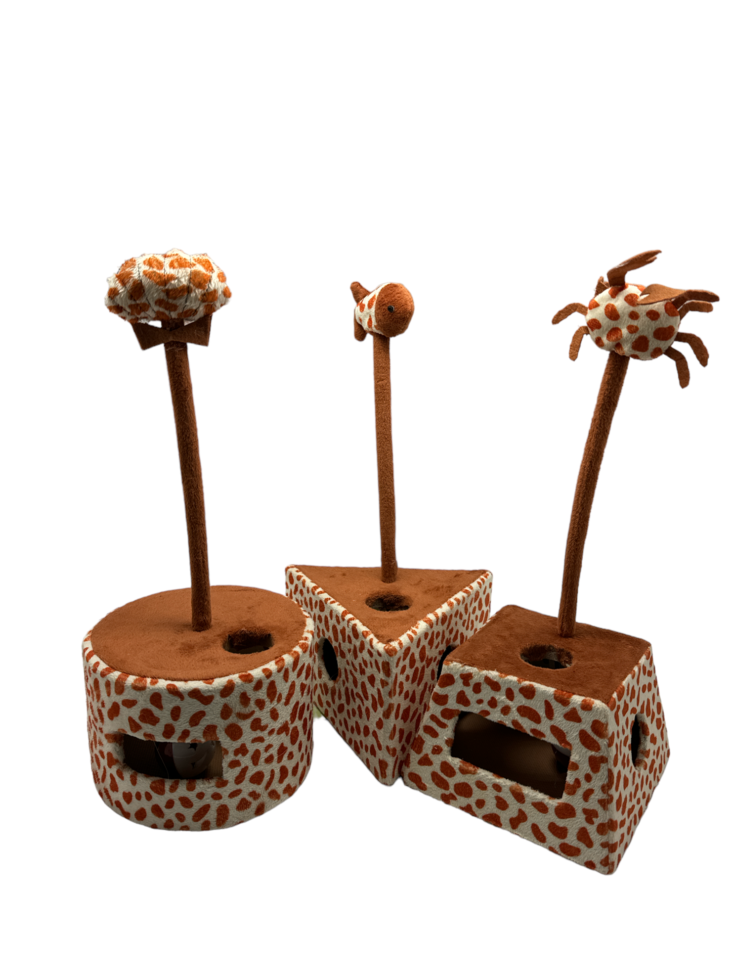 Giraf serie - Aktivitetes legetøj til Katte - med bolde i og fjedre med plysdyr på for.