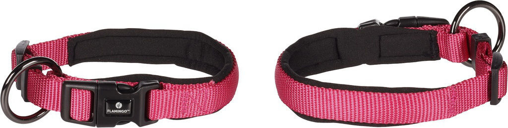 The Abbi Cherry Red collar is perfect for your dog! Made from nylon with a soft neoprene lining for extra comfort. Easily adjustable and equipped with a convenient click closure. The metal ring with a shiny dark grey finish completes the picture. With strain relief for added safety.