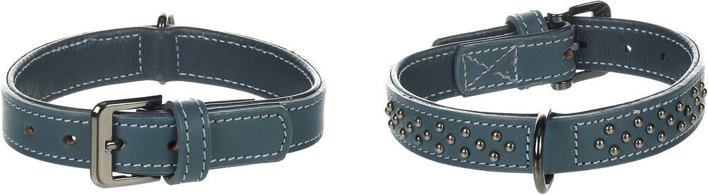 This snazzy collar is just the ticket for your pooch! Crafted from buffalo leather with a shiny dark grey buckle. The oiled leather and sturdy stitching ensure durability. In a fetching shade of blue.