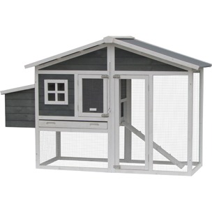 The Vigo Rustic chicken coop with run is just perfect for your fluffy pals! Made from sturdy pine wood with rubber feet for protection. It comes with a cozy sleeping area, nesting boxes, run, and perches. Cleaning is a breeze thanks to the removable tray. Plus, there's a plexiglass window and hinged roof for easy egg collection. And you can separate the sleeping area from the run if needed.