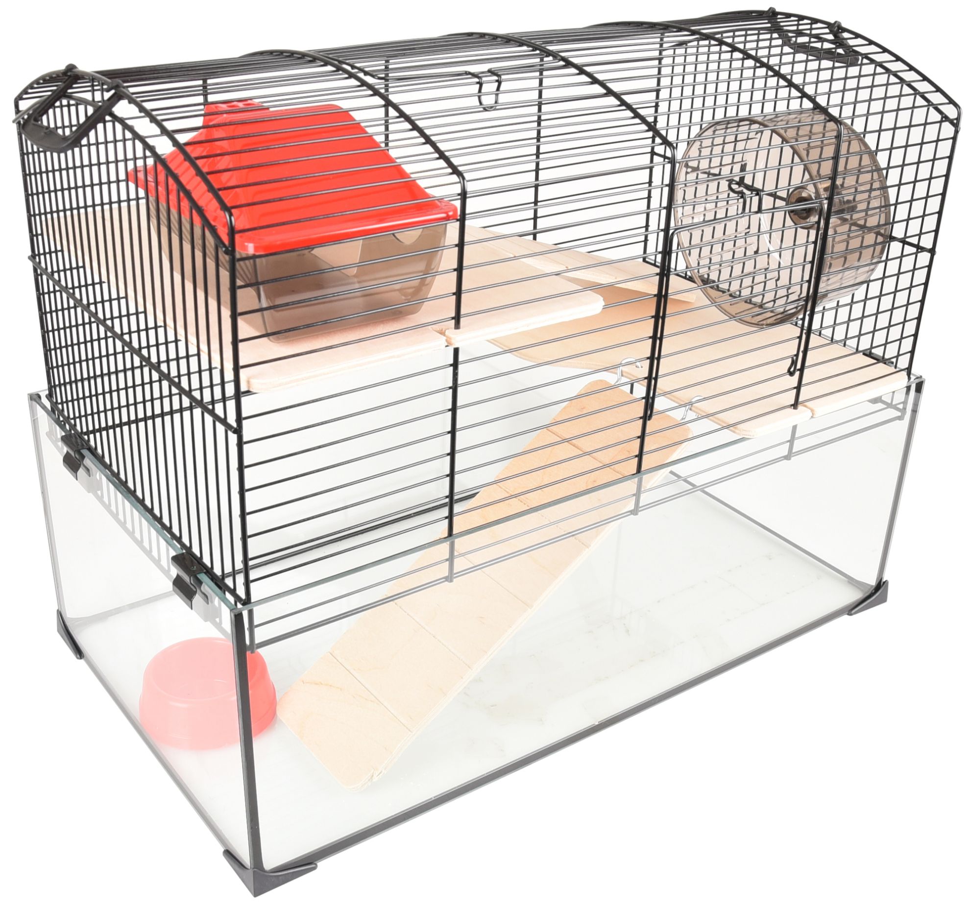 The Vitru Black Hamster Cage is perfect for your hamster! Complete with platforms, ramps, exercise wheel, and more. Easy to move around and with convenient doors. Safe and comfortable for your furry friend.