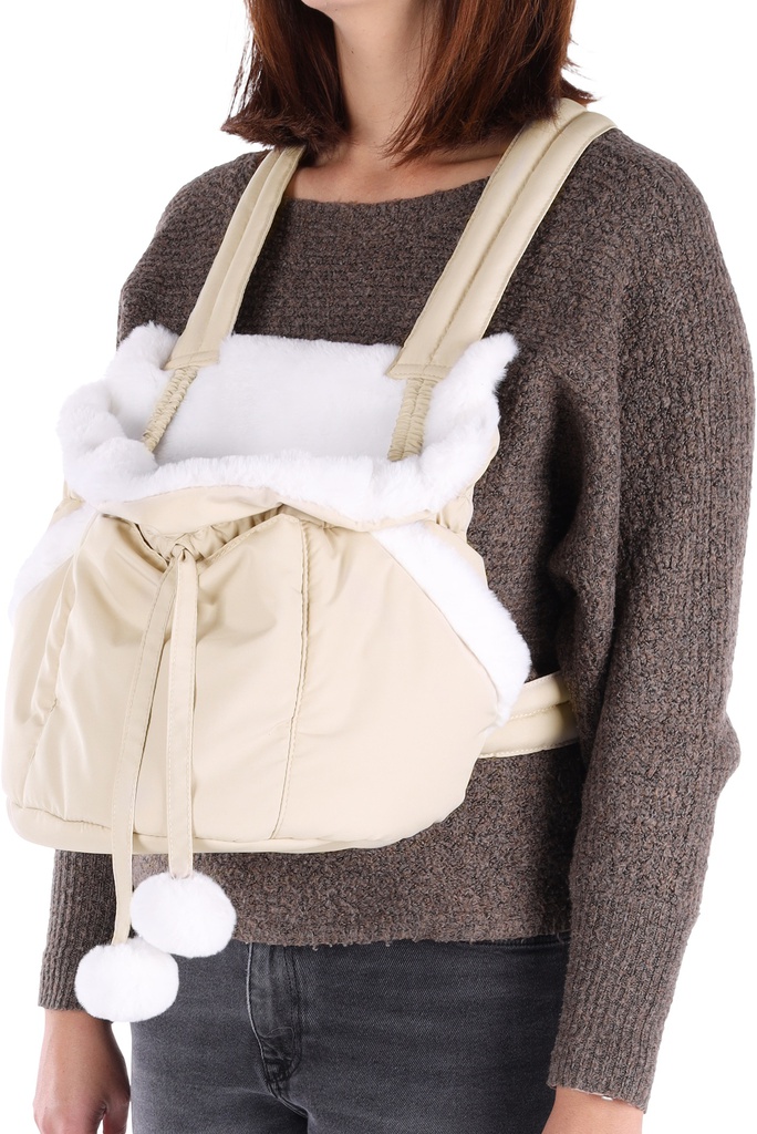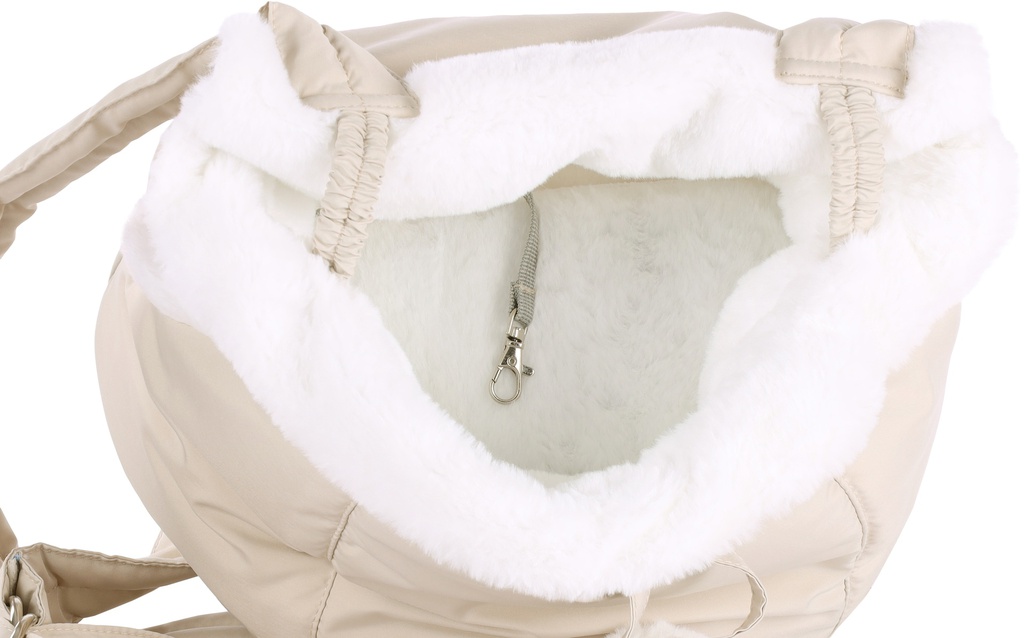Take your furry friend everywhere with the Cuddi Beige belly carrier! Made from polyester and finished with soft plush for extra comfort. With a top opening and adjustable strap for safety. Convenient storage pockets and adjustable shoulder straps make this belly carrier perfect for adventures with your dog!