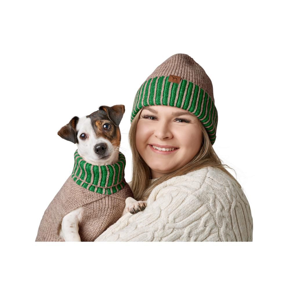 Odense sæt bestående af pullover til hunden og Beanie hue til ejeren fra Hunter i grøn/beige.