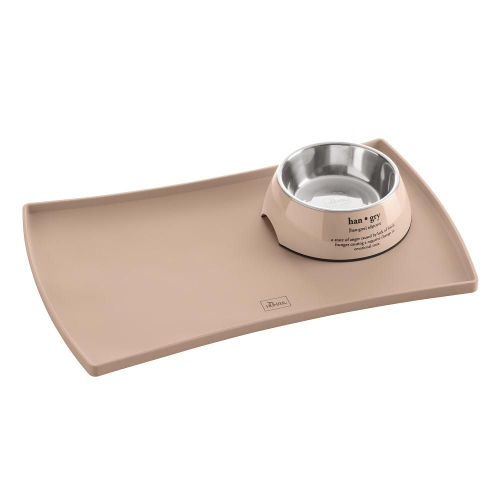 Foderskålunderlag Mayfair af mærket Hunter. Fremstillet i fødevaregodkendt silikone. Praktisk til at holde gulvet under og omkring skålene rent og fri for vand og foderrester. 48 x 30 cm