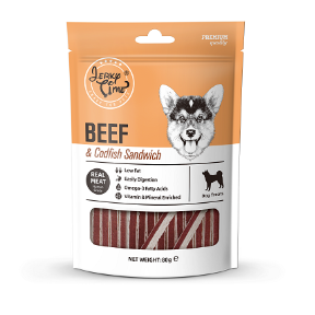 Sammensætning: oksekød, torsk, glycerin, vegetabilsk protein, stivelse, vegetabilsk olie, salt, hvidløgspulver, EF-godkendte farvestoffer.