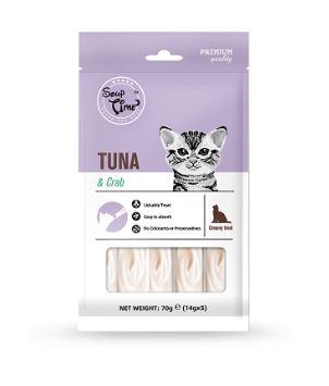 Sammensætning: tun, krabbe, kylling, stivelse, taurin, vitamin (A, B2, B3, B5, D3, E) xanthan gummi.
