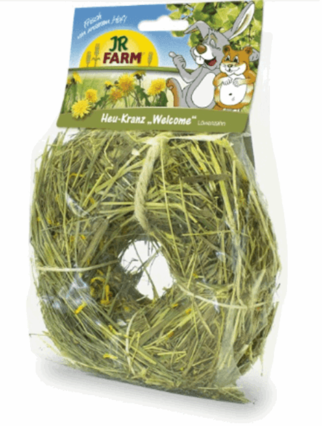 Sød Velkomstkrans - giv den som gave eller brug den til dine egne dyr! Fremstillet af lækkert hø og skønne tørrede mælkebøtter