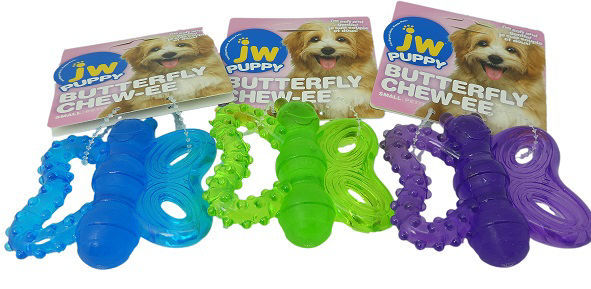 JW Butterfly kan anvendes til den ivrige tygger. Legetøjet er fremstillet i farvestrålende gennemsigtigt materiale og er et 100% genanvendeligt stærkt materiale.