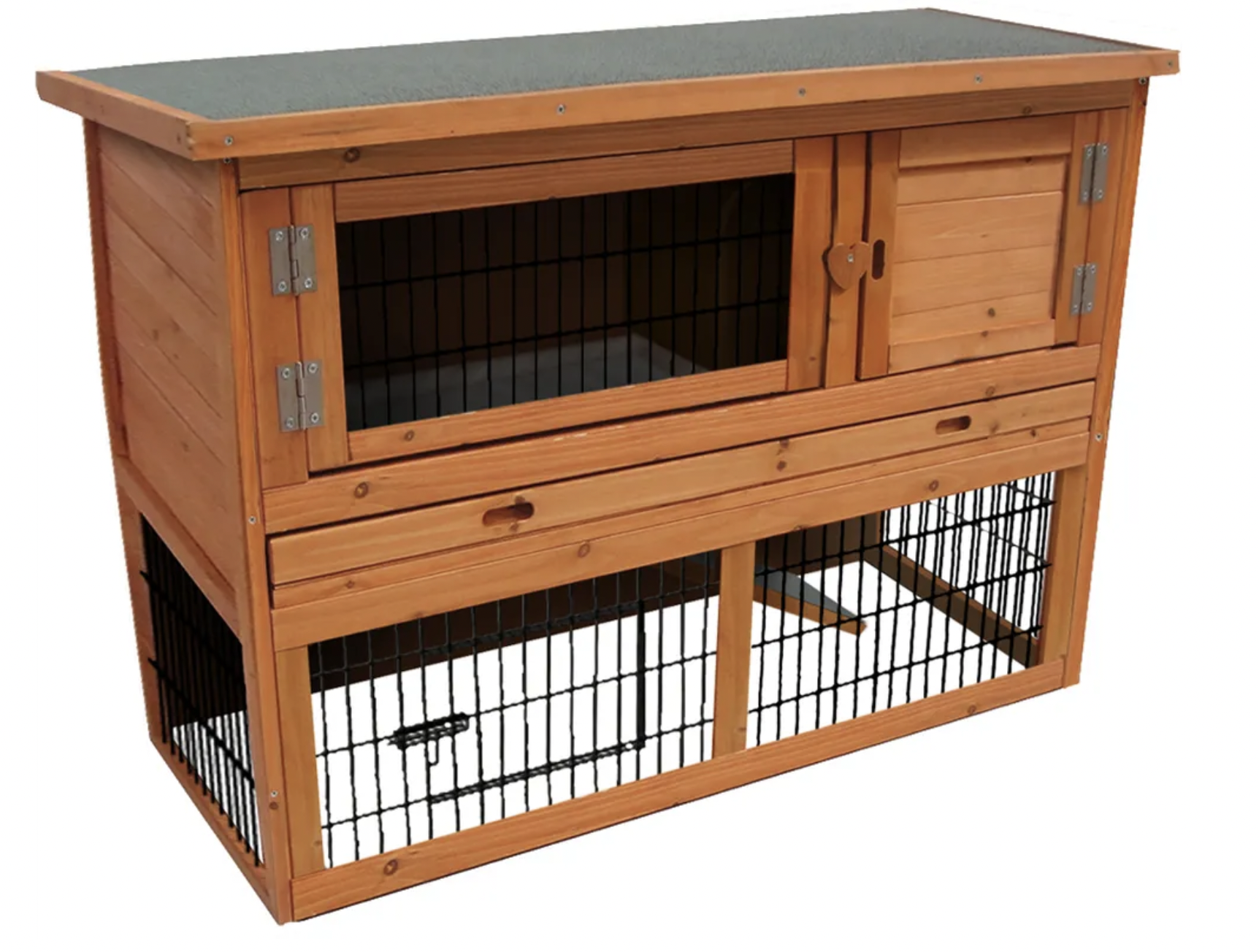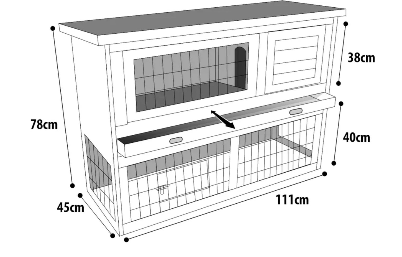 2 storeys, Ramp, Self-assembly, With metal tray, With rubber feet, Wooden roof with bitumen roofing