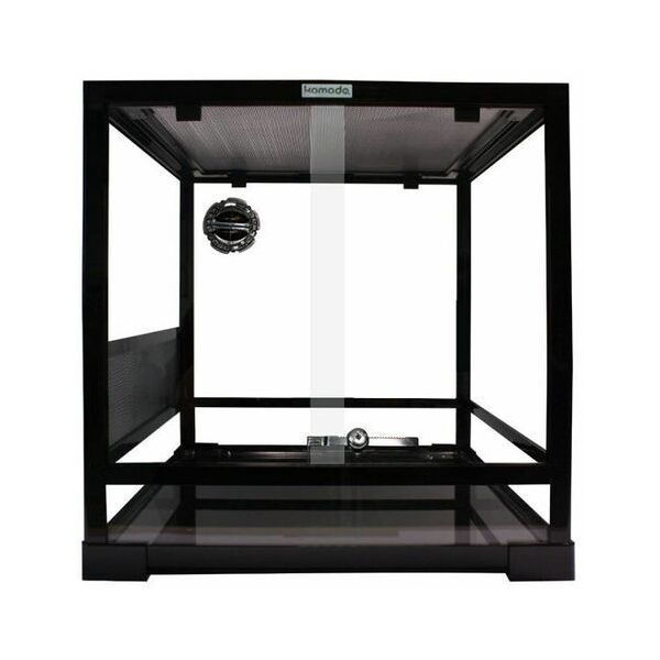 Glas terrarium fra komodoDer er både udluftning i toppen og i siden, så det er velegnet til både tropiske og tørre terrarium set up.Kraftig net i toppen, så man kan sætte varmelampe og UV belysning oven på nettetHurtig at samle