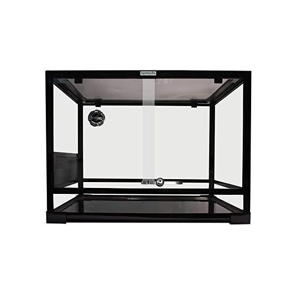 Glas terrarium fra komodoDer er både udluftning i toppen og i siden, så det er velegnet til både tropiske og tørre terrarium set up.Kraftig net i toppen, så man kan sætte varmelampe og UV belysning oven på nettetHurtig at samle
