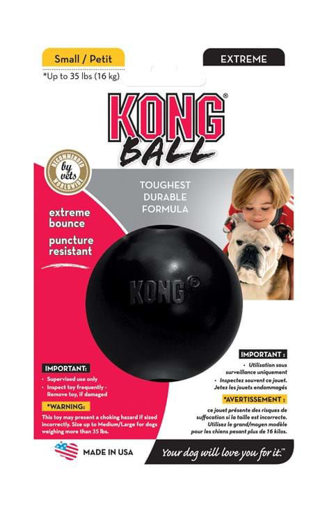 Ingen gummibolde hopper bedre og holder længere end KONG Extreme Balls. De er fremstillet af ren gummi, er punkterfri, og helt igennem fantastiske til aktiv leg med hunden.