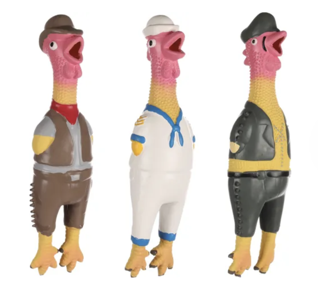 These awesome Dog Toys Village People are a must-have for every dog! Choose from various chicken dress-up parties and enjoy the sound they make when your dog bites into them. Unfortunately, you can't choose which one you get, but that only makes the surprise element even more fun!