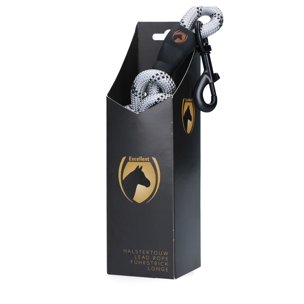 The lead rope of Excellent Horse can be combined with all halters of Excellent Horse and is therefore available in 5 different colours. In the lead rope are reflective details and the material used, namely strong polyester, is also used by mountaineers. The attachment of the lead rope consists of a 360 degrees rotatable musketon hook (black) with a nice rubber finish. The lead rope has a length of 2 metres.