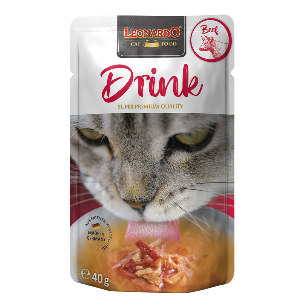 Katte drikker af natur meget lidt og føler sjældent tørst, og det kan medføre væske mangel. LEONARDO® Drinks animerer til at drikke på grund af den usædvanlige kødsmag