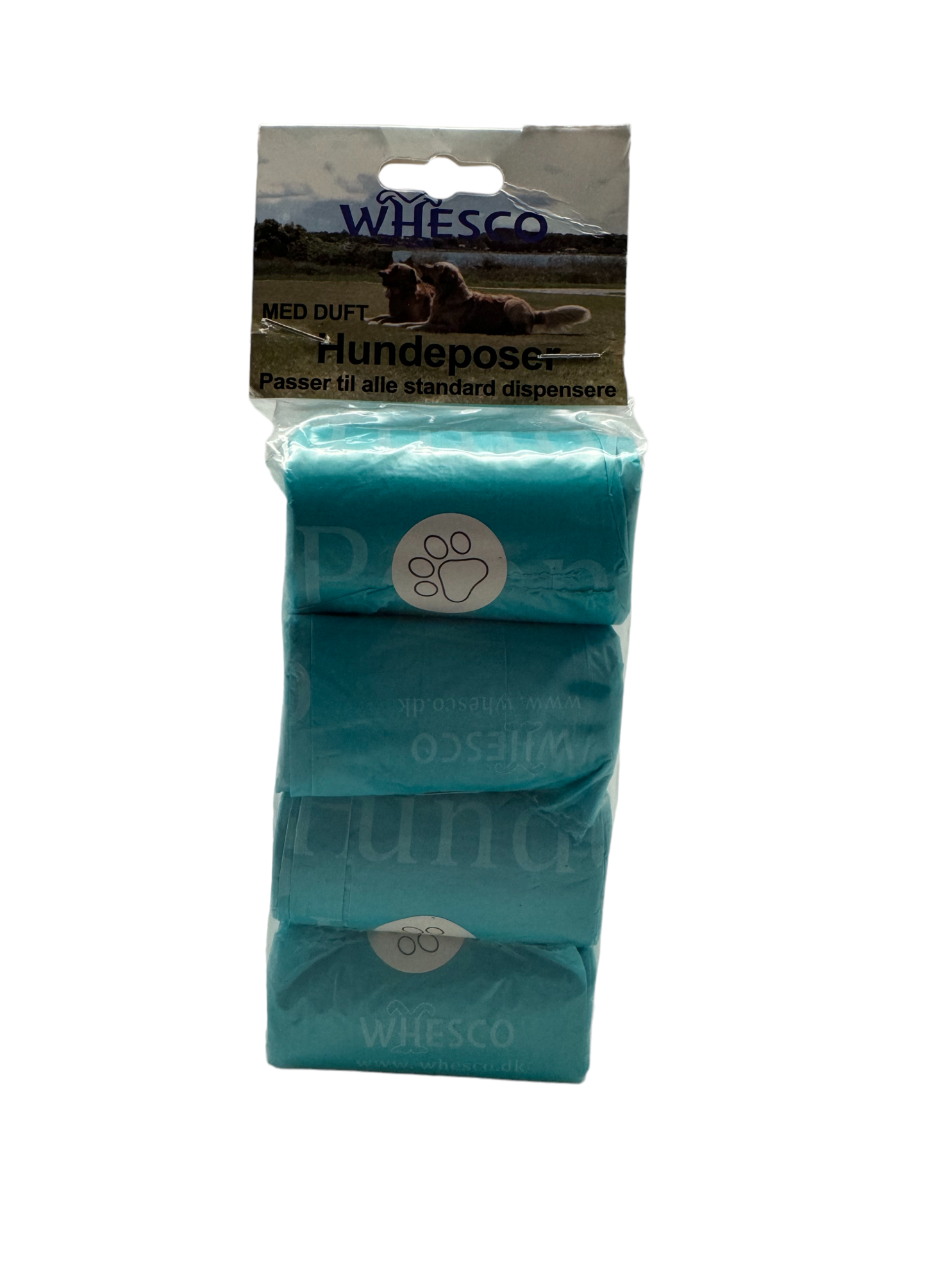 Whesco hundeposer med duft - gør det lidt sjovere at samle dit kæledyrs efterladenskaber op, da du nu kan gå rundt med en poser som dufter lidt mere behageligt.