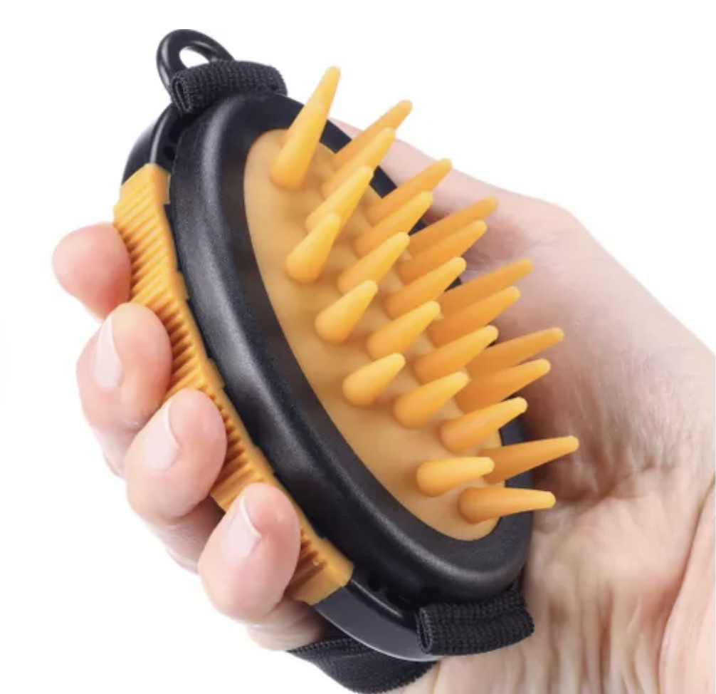 This handy dog brush with elastic handle is perfect for puppies with short or medium-length fur. It removes loose hair, dust, and dirt, cares for the skin, and improves blood circulation. Also ideal for use in the bath! 🐶🛁 #dogcare #puppylove