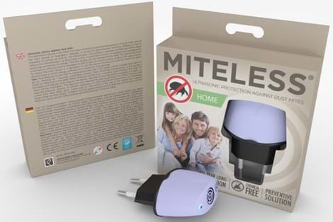 Enheden udsender ultralydsbølger, der er ufarlige for mennesker og kæledyr, men forstyrrer støvmider og holder dem således væk.