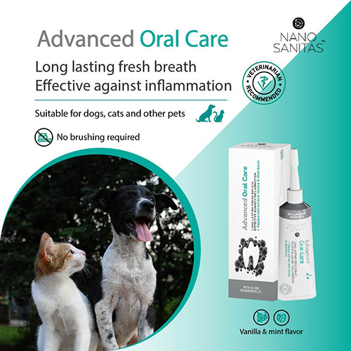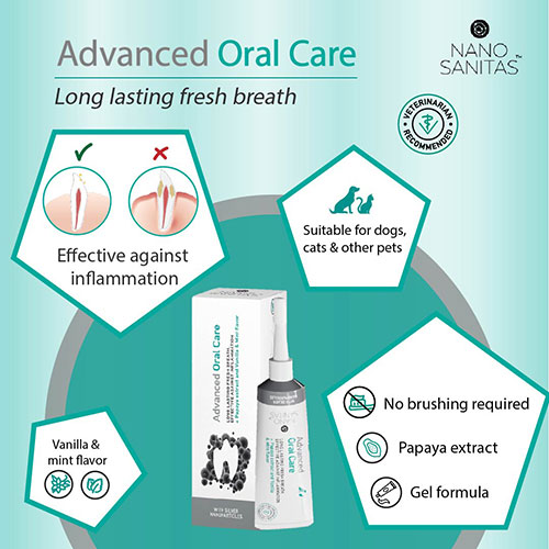 hvilket reducerer dyrlægeomkostningerne til mundpleje med op til 60 %. Indeholder sølv- og papayafrøekstrakt, der virker mod bakterier, reducerer plakopbygning med 50% og reducerer tandkødsbetændelse med 40%. Specielt formuleret i