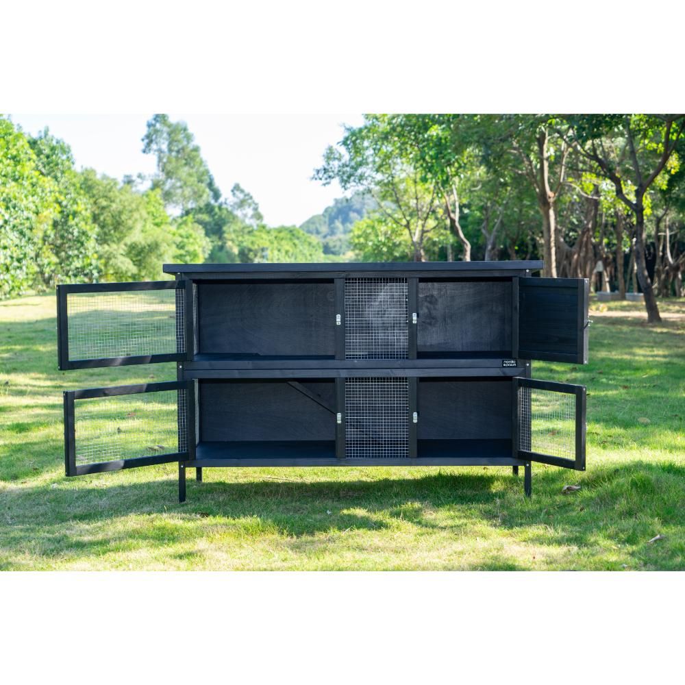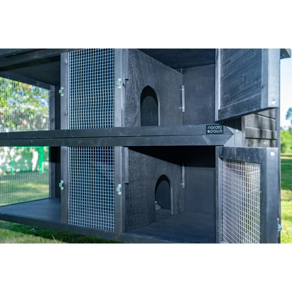 Nordic Paws 2-etagers kaninhus XXL i træ. Med flere låger for nem adgang til kaninen. Huset er overdækket med et vejrbestandigt tag.