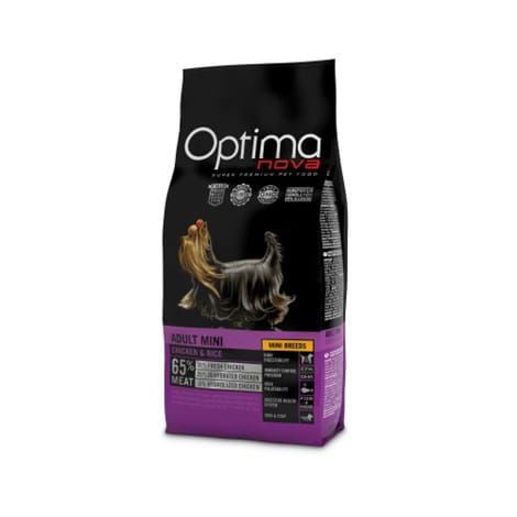 Optimanova Mini Adult Chicken & Rice er et fuldkostfoder til hunde.
