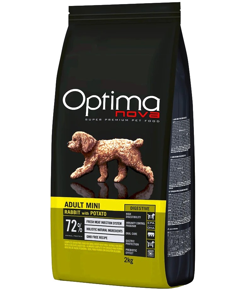 Adult Mini Digestive Kanin & Kartoffel er det eneste produkt på markedet i sin kategori, der er lavet af frisk kaninkød. Let at fordøje, velsmagende og lavt i kalorier, kolesterol og fedt, den indeholder også vigtige mineraler som jern, magnesium og zink., Omega3 hjælper med at holde din hud sund og din pels skinnende. Den er perfekt til små eller miniracer. Især for dem med sarte fordøjelser.