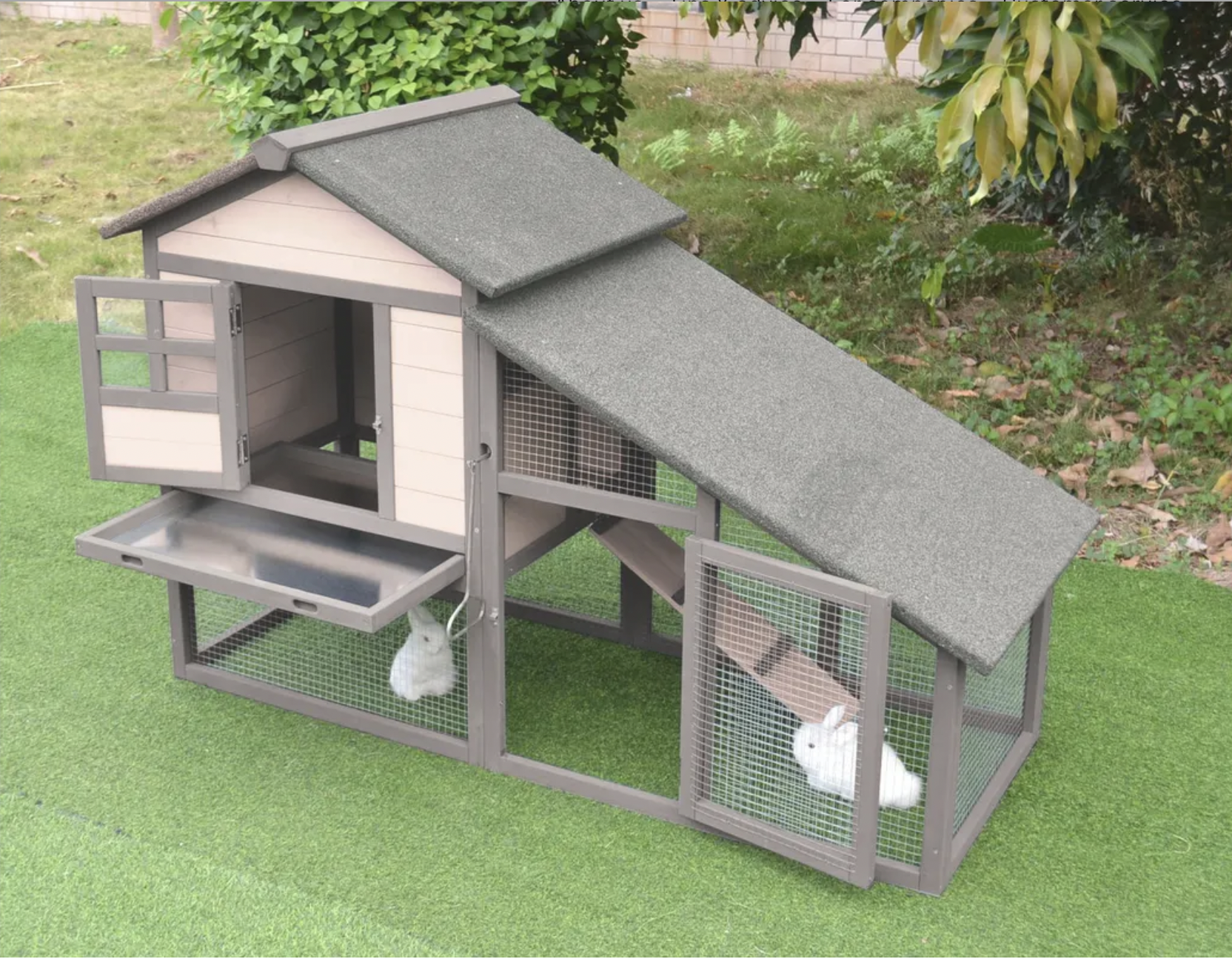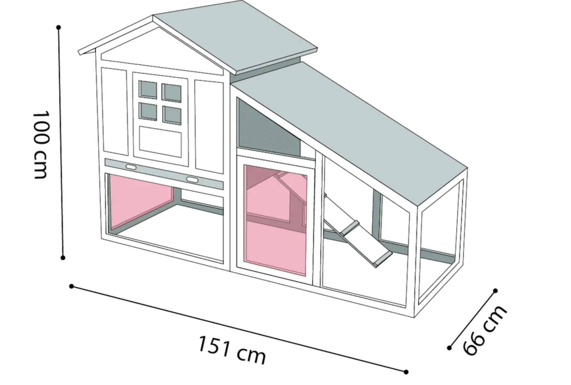Ramp, Self-assembly, With plastic tray, With protective feet, With sliding door, Wooden roof with bitumen roofing