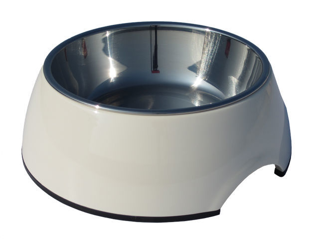 Med til melaminskålen følger en rustfri stålskål, som passer i. Det betyder, at du nemt kan tage stålskålen op, når der skal fyldes op med vand eller mad.
