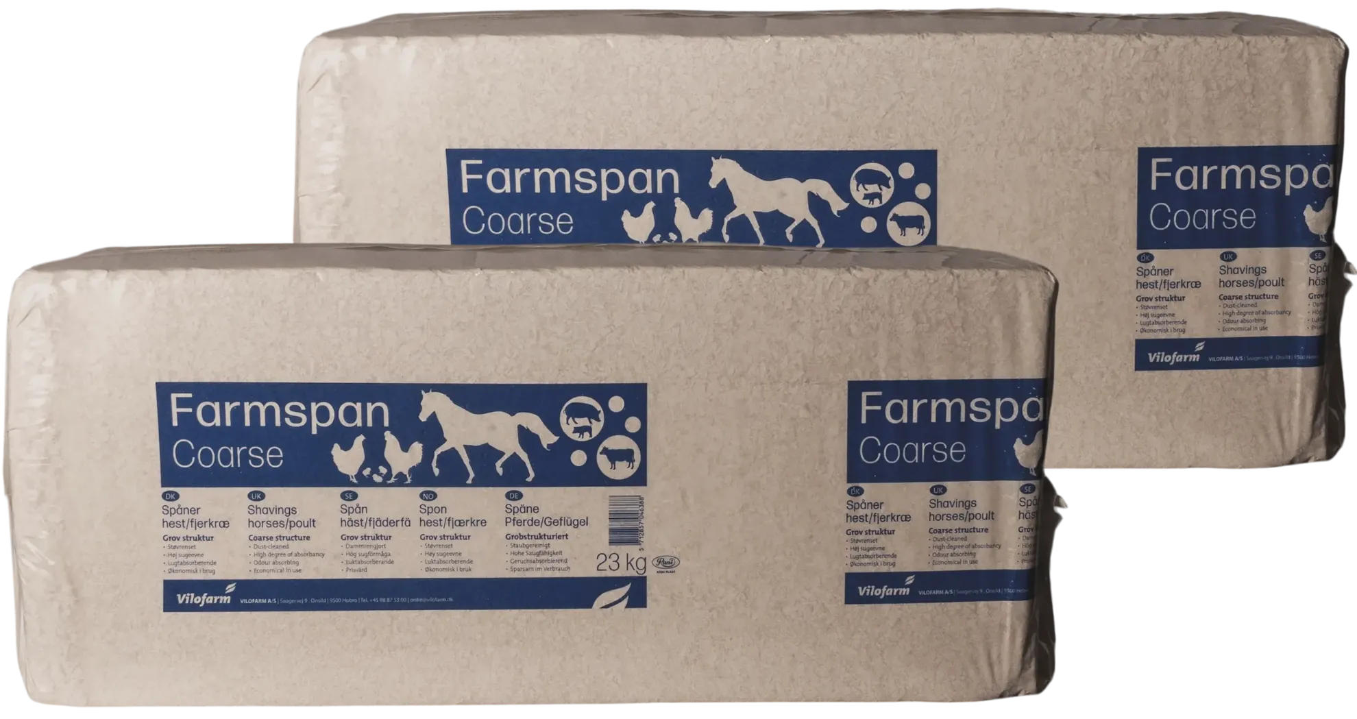Farmspan Grov er især velegnet til heste, da spånerne ikke sætter sig fast i hestens stråle. Samtidig gør den høje sugeevne at risikoen for sur stråle mindskes. De grove spåner giver en blød og fjedrende madras i boksen, hvilket gør det behageligt for hestene.