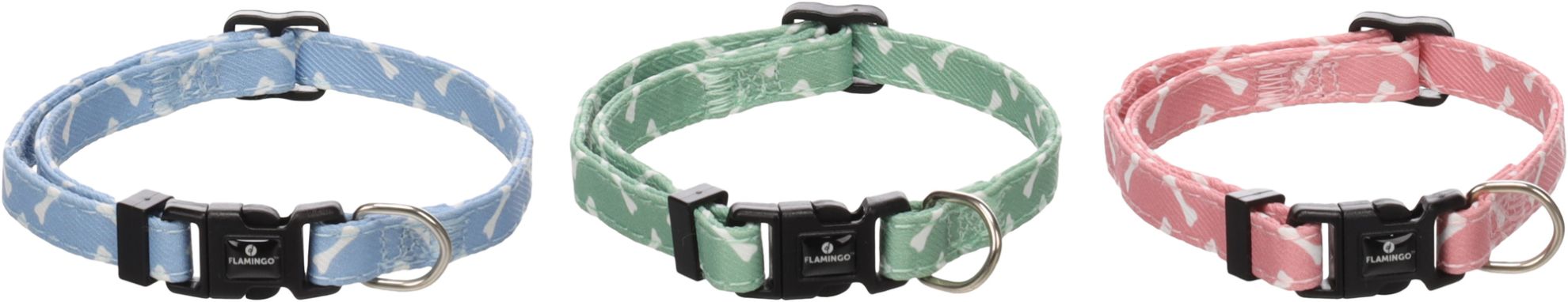 Let your pup shine with this cheerful collar Sari! Made from nylon, featuring a handy click buckle and a shiny chrome ring for the leash. Available in multiple colors for the perfect match with your furry friend.