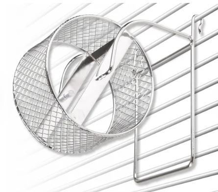 Let your hamster or mouse run like a pro with this silver Trota Exercise Wheel! Made of chrome-plated metal and with handy hooks for hanging. Perfect toy for your little nibbler!