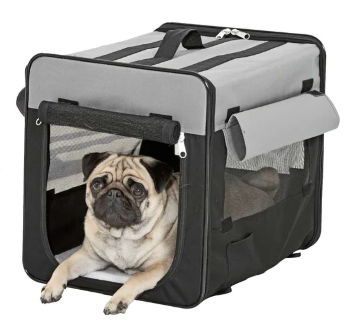Take your loyal four-legged friend everywhere with our handy black-grey nylon dog crate. With ventilation mesh and various sizes available, it's perfect for holidays and outings!