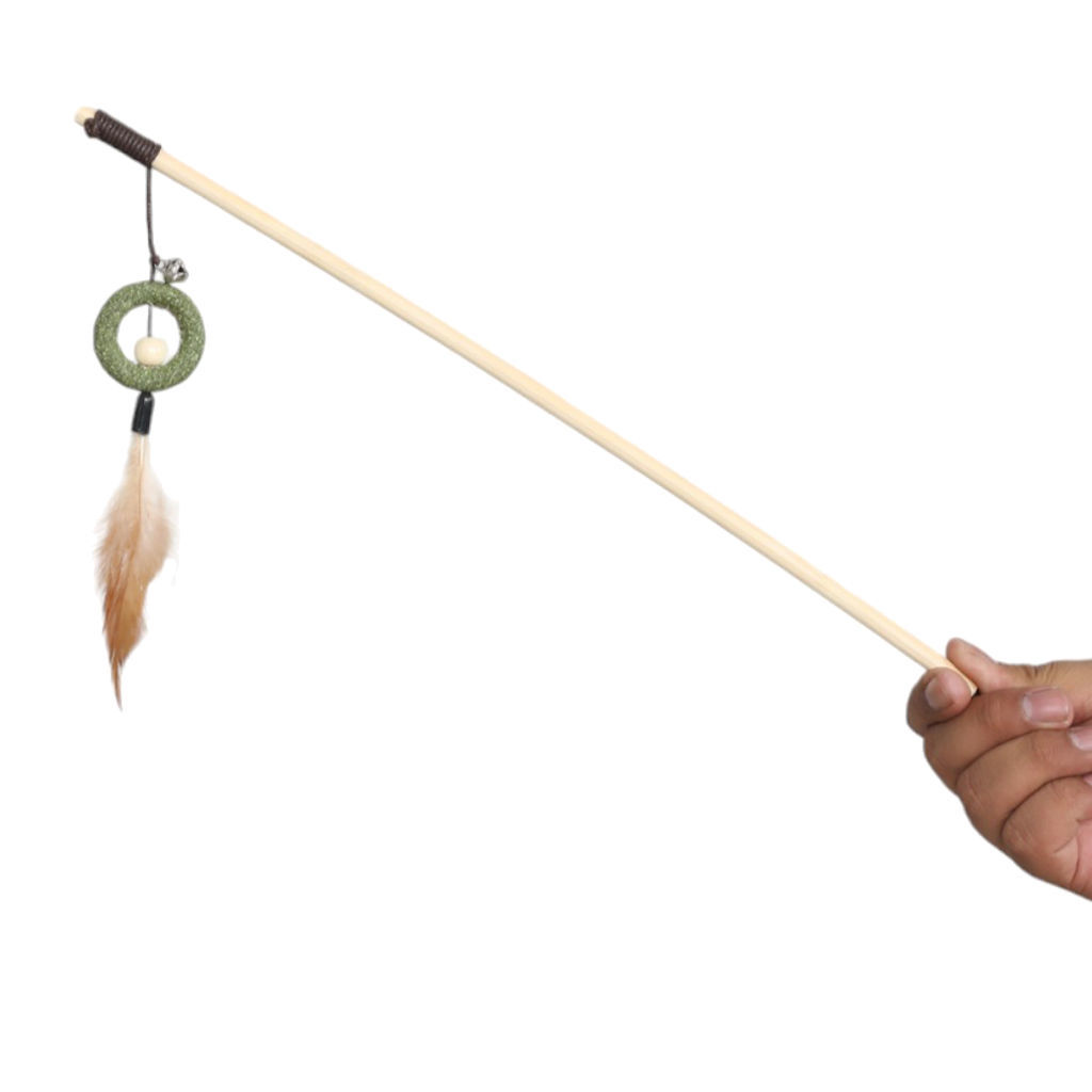 Fiskestang i træ m. fjer/catnipFlot fiskestang fremstillet af træ.Påsat ring af catnip samt fjer.