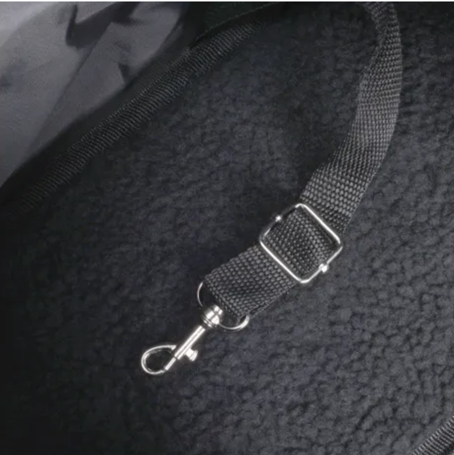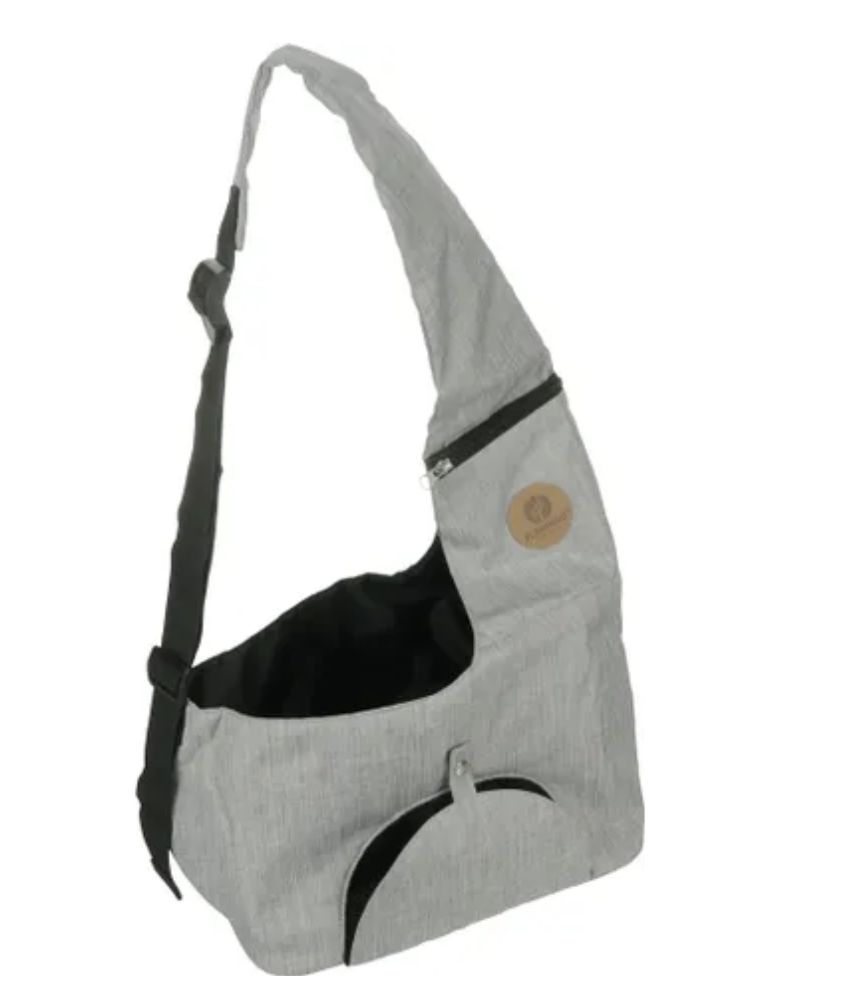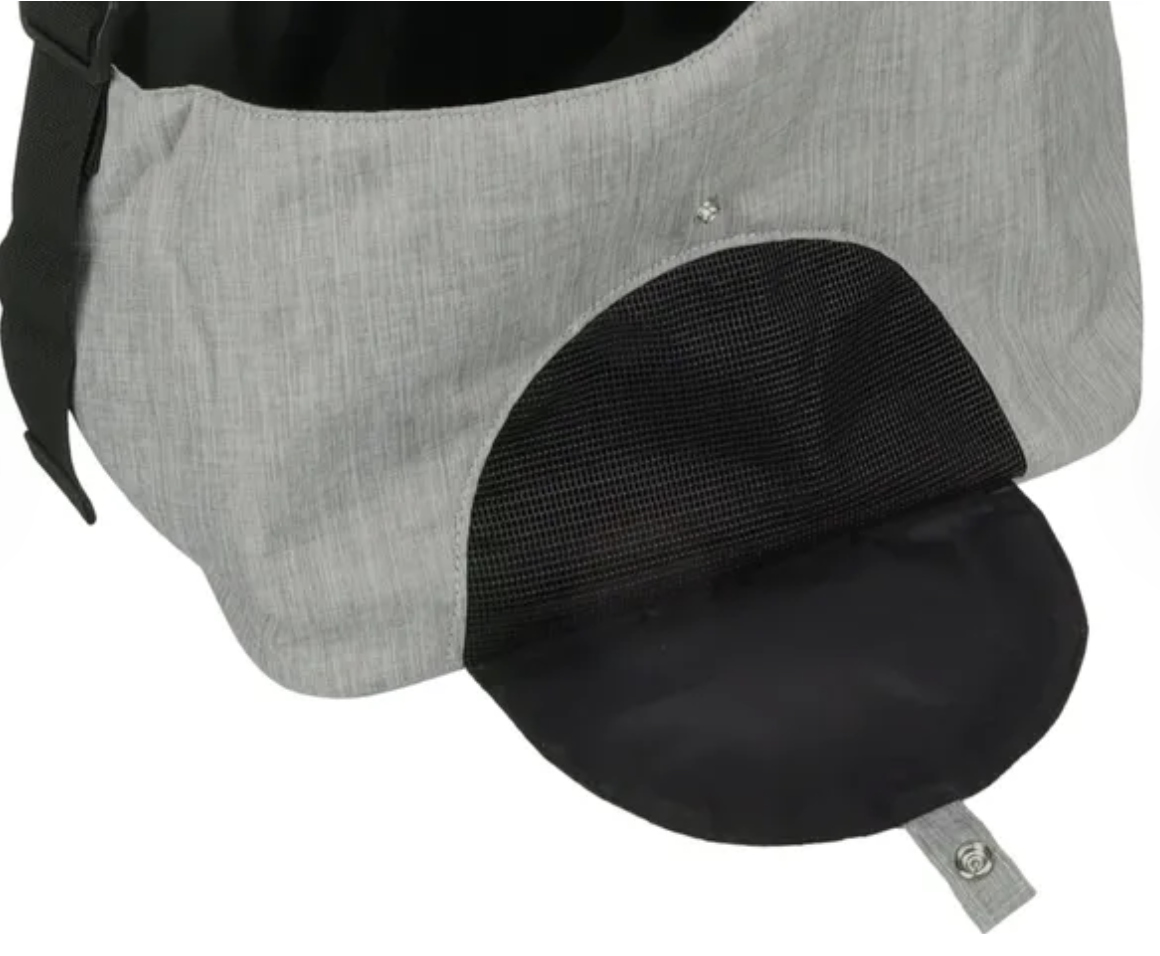 Take your furry friend everywhere with the Kanga belly carrier! Made of polyester and easy to clean. With a handy top opening and removable bottom. Adjustable strap and carabiner for extra safety. Includes ventilation mesh, adjustable shoulder strap, and zippered storage pocket.